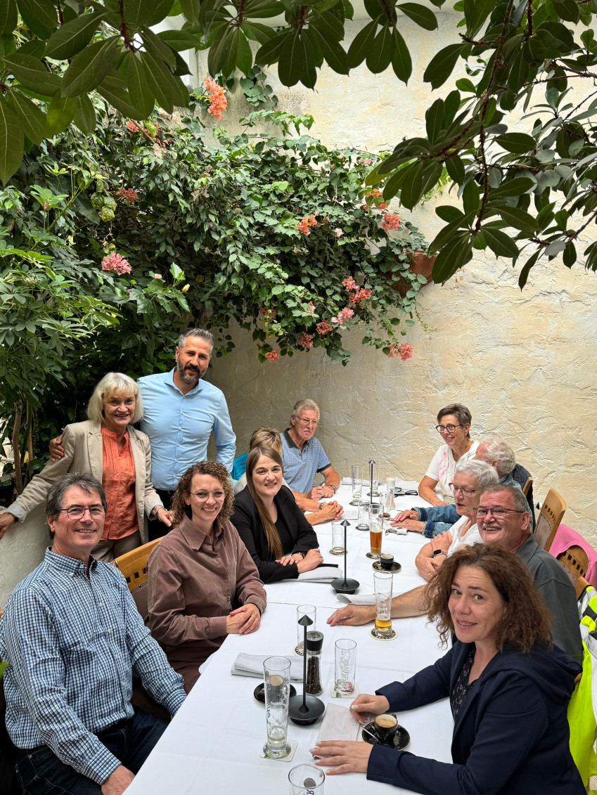 Ronja hatte bei ihrem ersten Besuch in Alzenau im Juli angekündigt: „Ich komme gerne wieder!“ Nun war es soweit! Wir hatten einen inspirierenden Abend mit unserer Landesvorsitzenden, die unsere Aufbruchstimmung sehr beflügelt hat. Am nächsten Tag stand der Besuch des Schulzentrums auf dem Programm. Die Direktorin der Grundschule und ihre Kollegen von der Mittel - und Realschule nutzten die Gelegenheit zum lebhaften Austausch und Lagebericht. Zeitgemäße Bildungspolitik benötigt den Dialog mit den Verantwortlichen, um die Herausforderungen der Zukunft zu meistern und es braucht mehr Vertrauen in die Arbeit der Schule. Unsere Bürgermeisterkandidatin wird sich für eine pragmatische und kooperative Lösung der räumlichen Probleme einsetzen. Was lag näher als im Anschluss die Konversionsfläche auf dem Wellpappe Gelände zu besichtigen? Die Nachnutzung des Firmenareals in der Innenstadt ist eine einmalige Chance für die Alzenauer Stadtentwicklung, die wir lösungsorientiert angehen wollen. Der Geschäftsführer gab unserer Delegation, die auch vom Kreisvorsitzenden und der Ortsvereinsvorsitzenden begleitet wurde, bei einer Betriebsführung umfangreiche Auskunft über die Produktion und Firmenstruktur. Ronja und der langjährige Betriebsratsvorsitzende der Wellpappe hatten zudem genügend Gesprächsstoff als Gewerkschaftler. Zum Abschluss gab’s ein gemeinsames Mittagessen in der „Dschungel-Pizza“, an dem auch die Kahler Bürgermeisterin teilnahm. Gutes Essen, gute Stimmung, obligatorisches Gruppenfoto - Fazit: Kommunalpolitik lebt vom Austausch mit der Basis. Danke an alle Beteiligten- liebe Ronja, gerne wieder!🍀👍😘